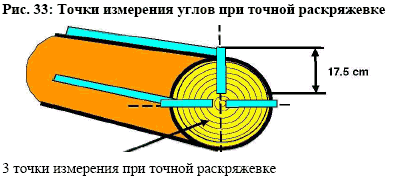 Угол резания: (3 измерения) Углы резания измеряются в трех местах по горизонтали и вертикали (рис. 33). В протокол вносят все 3 результата (точность 0,5°). Максимальный результат составляет 20 баллов за каждое бревно. ![]() Таблица 13